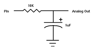 Pin. Each cycle of PWM consists of 256 steps. The Duty cycle for each PWM cycle ranges from 0 (0%) to 255 (100%). This PWM cycle is repeated Cycle times. Pins are numbered from 0 to 7.The pin is made an output just prior to pulse generation and reverts to an input after generation stops. This allows a simple R/C circuit to be used as a simple D/A converter: