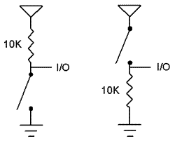 Pin and optionally performs debounce and auto-repeat. Pin is automatically made an input. Pin may be a constant, 0-15, or a variable that contains a number 0-15 (e.g. B0) or a pin name (e.g. PORTA.0).| Down | State of pin when button is pressed (0..1). | |
